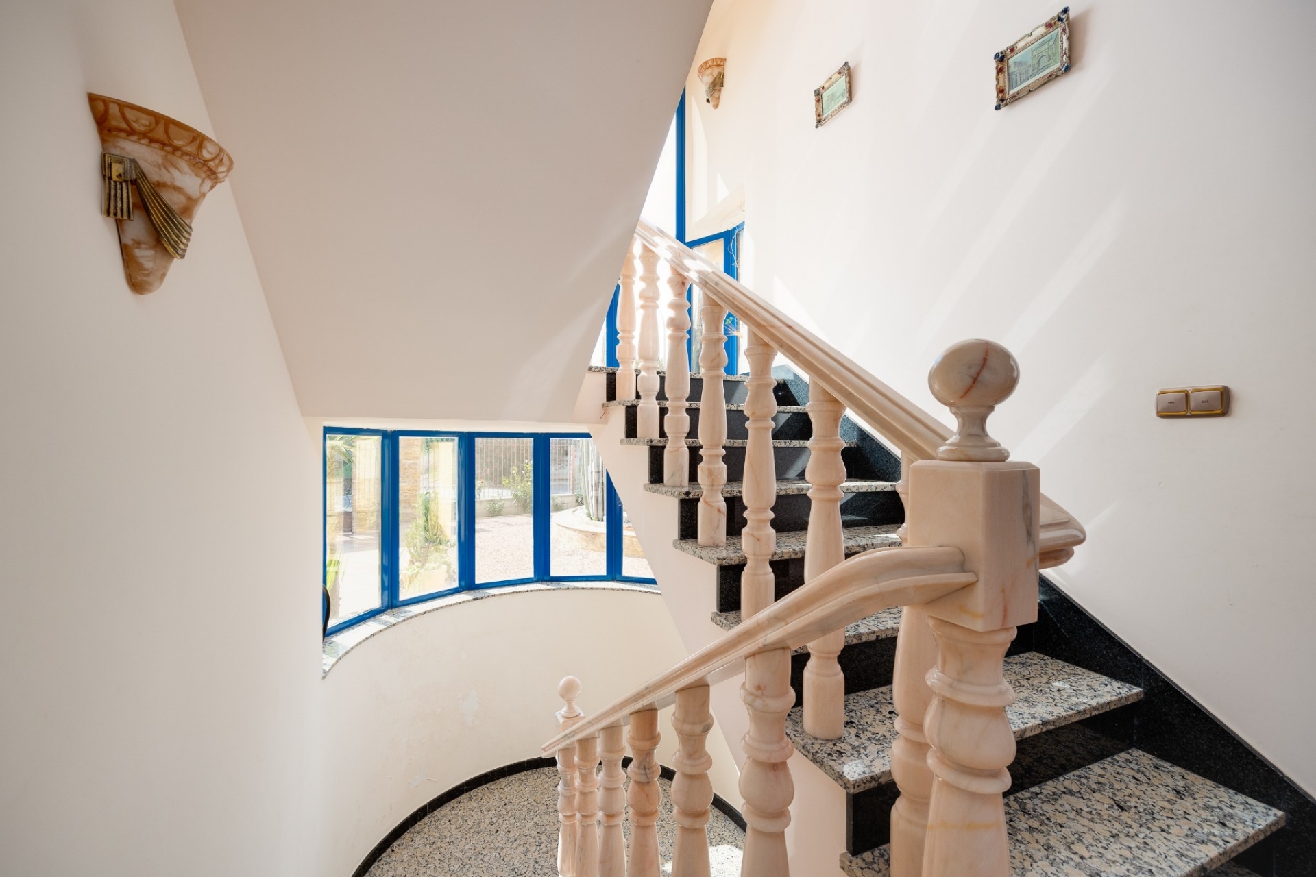 Descubra una propiedad que combina la elegancia mediterránea con el lujo contemporáneo: una villa extraordinaria pensada para quienes buscan distinción, confort y una presencia arquitectónica inconfundible. Su imponente fachada, las terrazas curvas y la espectacular torre acristalada con escalera panorámico hacen de esta vivienda no solo un hogar, sino un verdadero emblema.