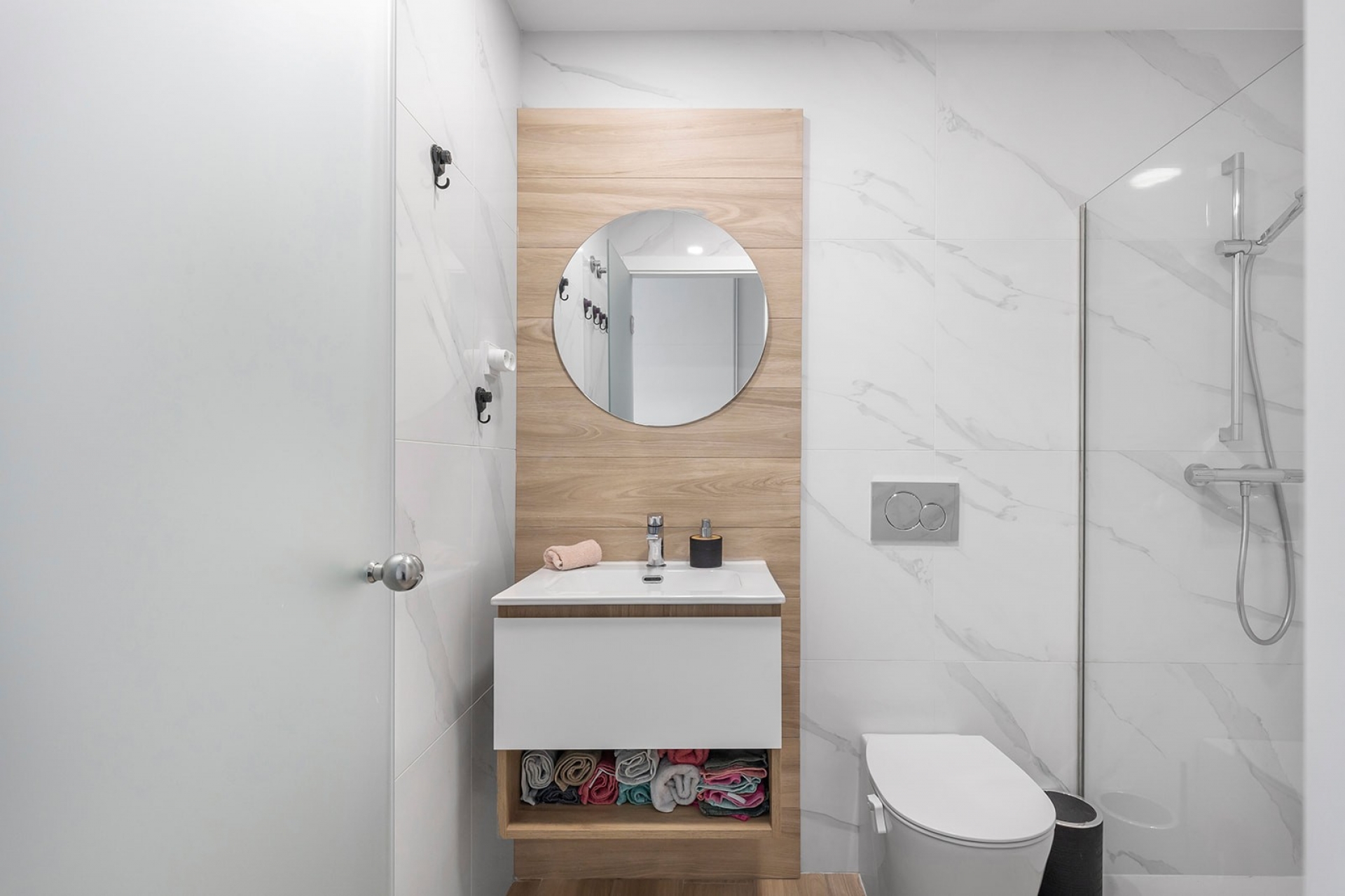 El diseño inteligente aprovecha al máximo el espacio disponible, con un cuarto independiente para lavandería/trastero, acceso directo a la terraza desde ambos dormitorios y mosquiteras en todas las ventanas para mayor confort durante todo el año. Ideal como residencia habitual o casa de vacaciones.