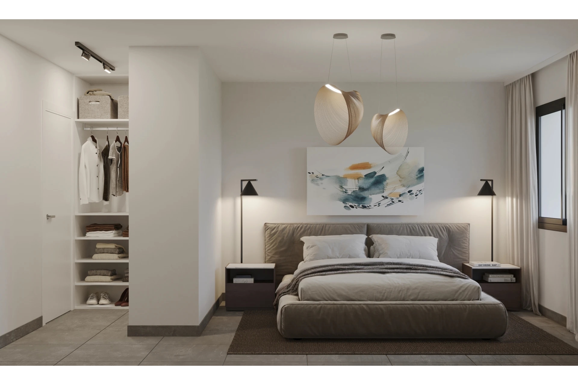 Dentro de estas residencias en Benidorm, se pone énfasis en la comodidad y la modernidad. Los apartamentos, plantas bajas y áticos cuentan con suelos de cerámica que combinan elegancia con fácil mantenimiento. La tecnología moderna está integrada sin problemas a través de intercomunicadores de video y persianas eléctricas para mayor comodidad y seguridad. Las cocinas vienen completamente equipadas con electrodomésticos de alta calidad, mientras que el aire acondicionado asegura comodidad durante todo el año. Los armarios empotrados ofrecen soluciones de almacenamiento eficientes dentro de distribuciones que incluyen dos dormitorios y dos baños, perfectas para familias o parejas.