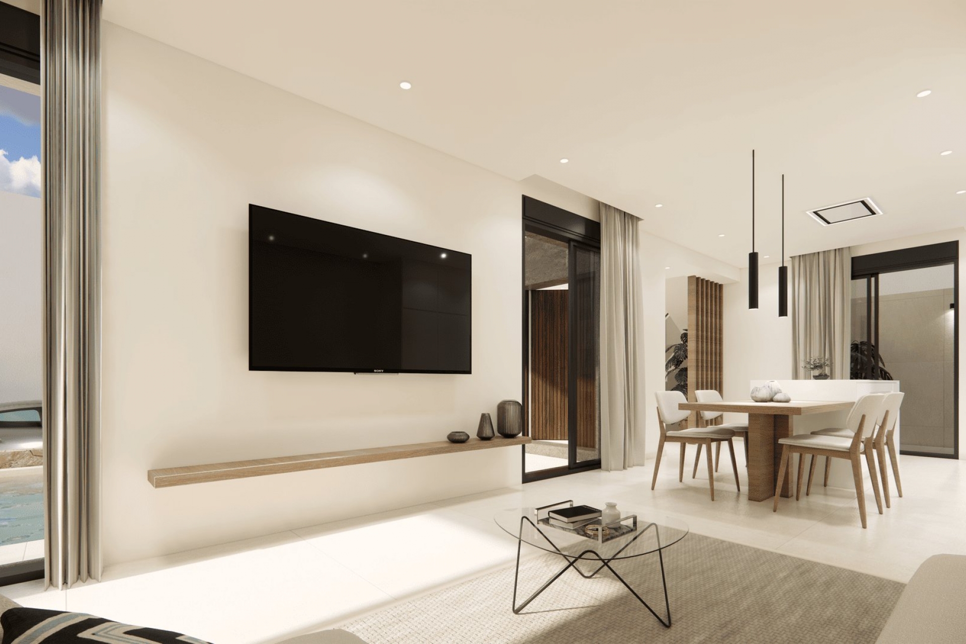 Los espacios exteriores de estas casas adosadas están diseñados para disfrutar plenamente del clima mediterráneo. Cada hogar cuenta con un jardín privado, ideal para crear su retiro verde personalizado o disfrutar de momentos al aire libre. Además, cada casa adosada incluye su propia piscina privada, proporcionando un oasis personal para refrescarse durante los calurosos días de verano. La terraza añade otra dimensión con espacio para relajarse, cenar al aire libre o simplemente disfrutar de las vistas circundantes.