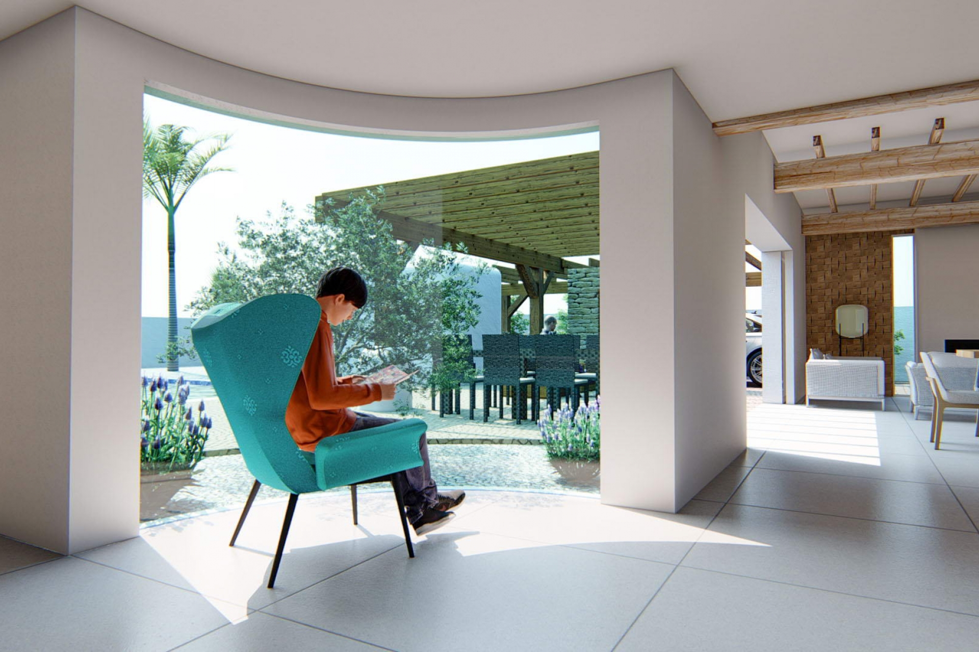 Diseñada para mejorar el disfrute del clima mediterráneo, el exterior de esta villa en Alfaz del Pi cuenta con un impresionante jardín perfecto para la relajación o actividades al aire libre. La terraza ofrece un lugar ideal para cenar al aire libre o simplemente disfrutar de las vistas y el entorno natural. Con una piscina privada incluida, tienes tu propio oasis personal para refrescarte en los cálidos días de verano. La pérgola añade elegancia mientras proporciona sombra, creando una atmósfera acogedora al aire libre.