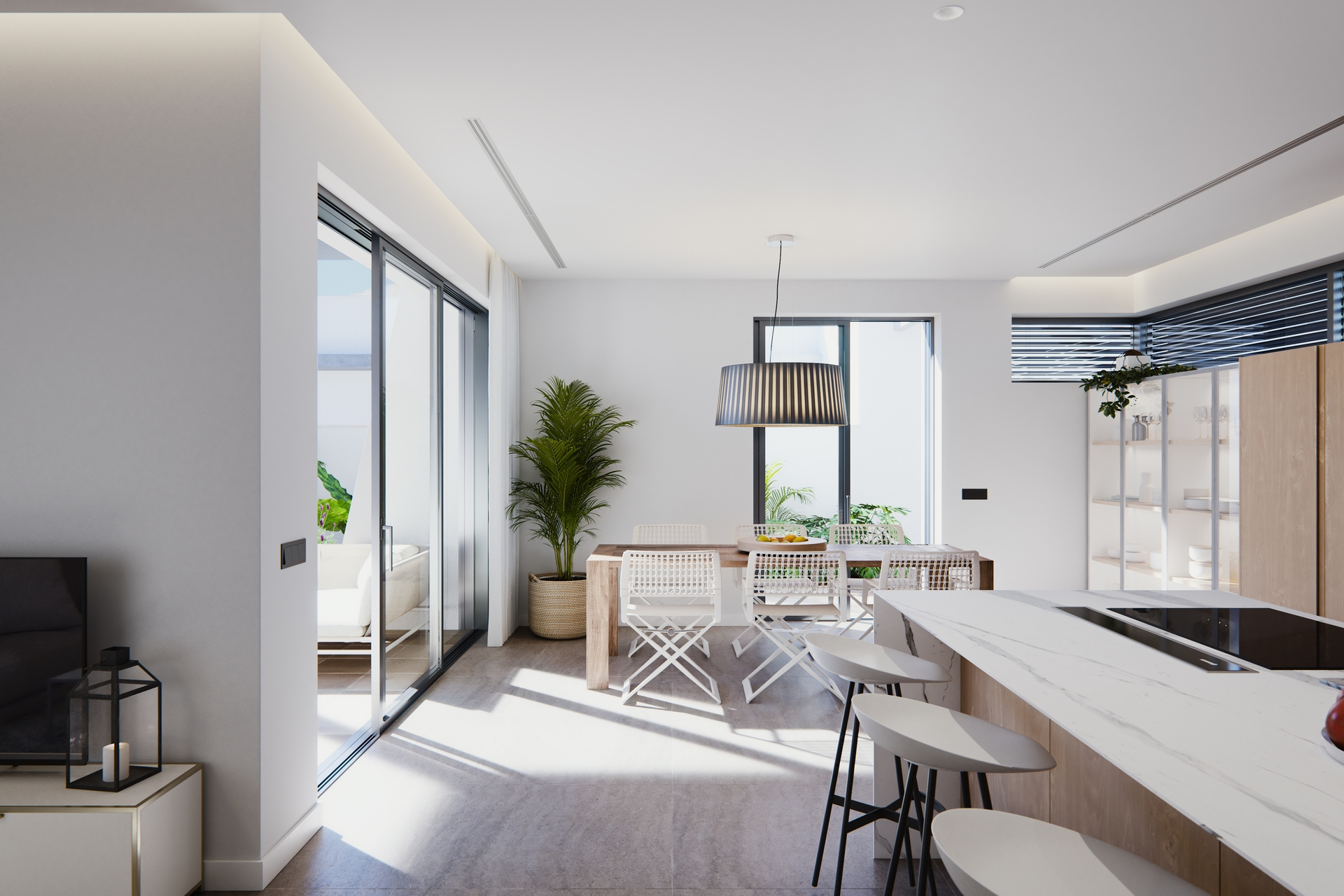 Dentro de estas villas, encontrará una atmósfera moderna pero acogedora, diseñada para el máximo confort y privacidad con tres dormitorios y tres baños. Los suelos de porcelanato añaden sofisticación y son fáciles de mantener. Equipadas con aire acondicionado, estas casas prometen comodidad durante todo el año. Las persianas eléctricas y los videoporteros mejoran aún más la comodidad y la seguridad. Los electrodomésticos de alta calidad simplifican la vida diaria, mientras que los armarios empotrados en los dormitorios ofrecen amplio espacio de almacenamiento para mantener las áreas ordenadas y funcionales.