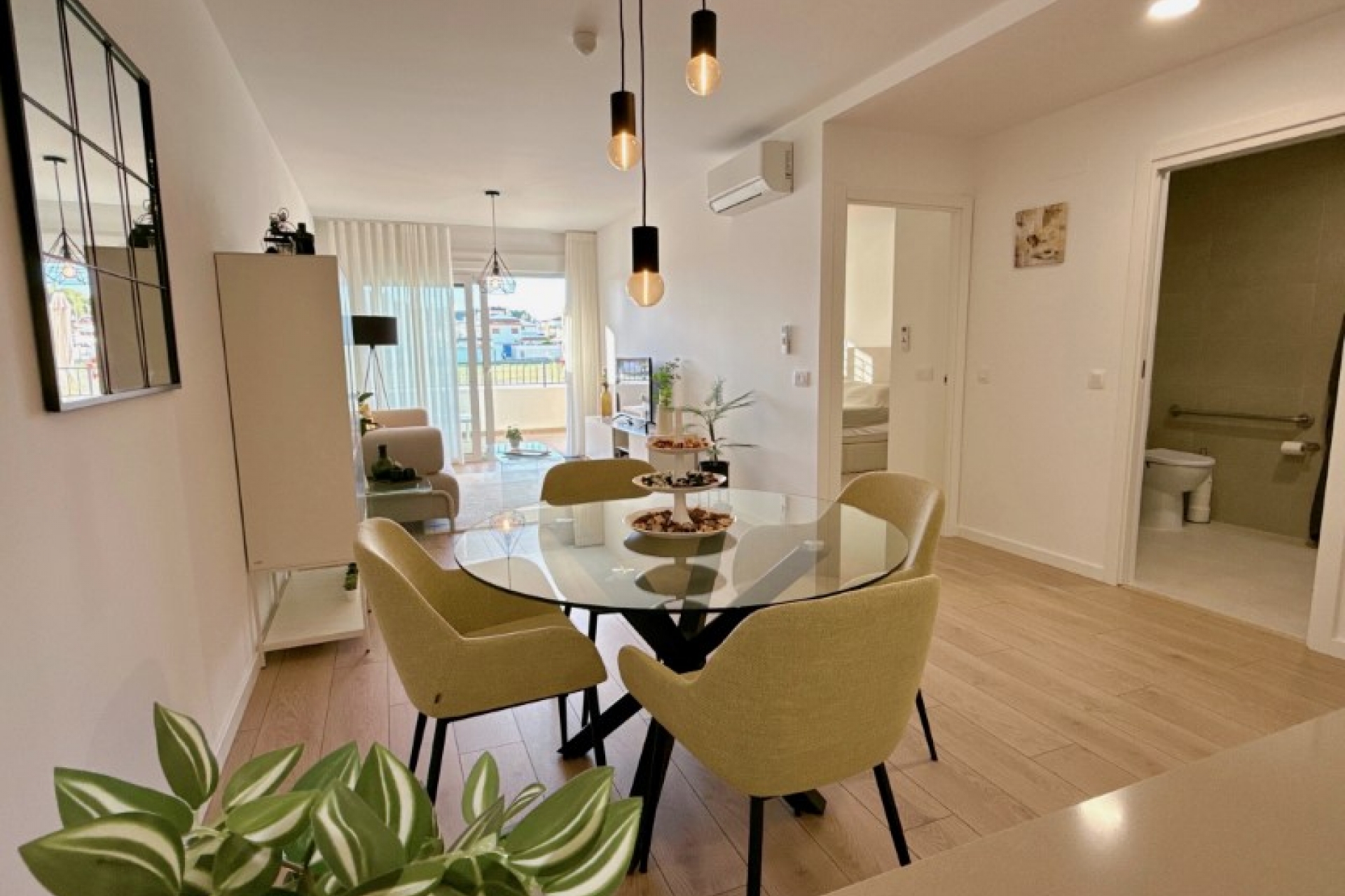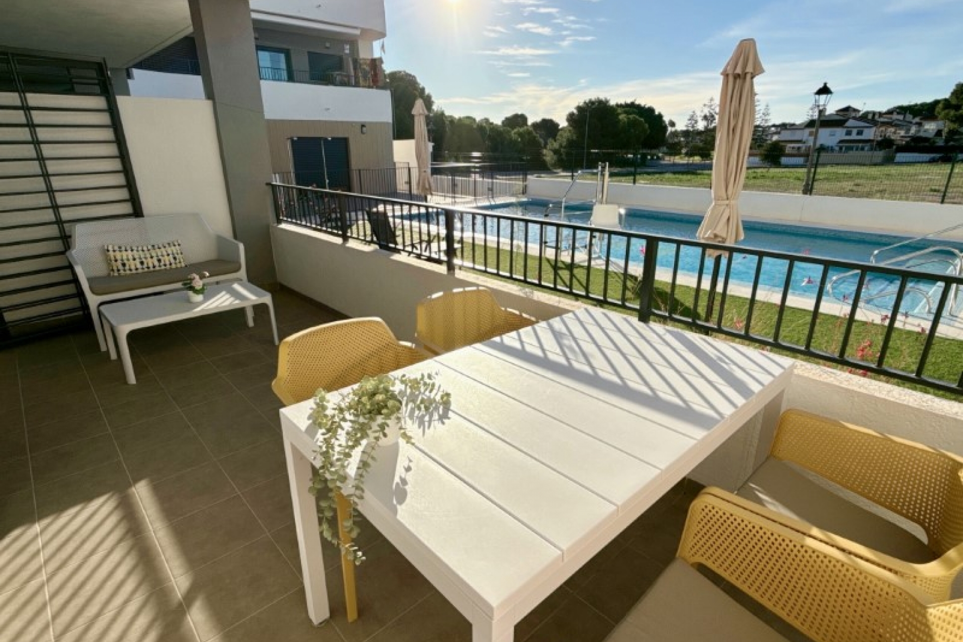¿Busca una vivienda de calidad, lista para entrar a vivir y cerca de la playa? Esta podría ser su oportunidad. Ofrecemos un apartamento moderno en planta baja, casi a estrenar, a la venta en la codiciada zona de Mil Palmeras. Construido en 2024, combina el lujo de una obra nueva con la comodidad de una entrega inmediata. Se trata de un apartamento espacioso, completamente amueblado y decorado con atención al detalle. Solo tendrá que desempacar sus maletas. Dispone de una agradable terraza para disfrutar del clima español y un baño grande y cómodo con ducha a ras de suelo. Se vende tal cual lo ve: amueblado y decorado ( + aparcamiento ). La ubicación es perfecta: a pocos pasos de una de las playas más bonitas de la Costa Blanca Sur. Además, disfrutará de amplias instalaciones comunitarias: una refrescante piscina, un gimnasio equipado, un club social e incluso una zona destinada a servicios como peluquería, estética y fisioterapia. Una oportunidad única para disfrutar de la vida en la costa española sin esperas, con todas las comodidades modernas a su alcance. ¿Interesado? Póngase en contacto con nosotros para una visita. Year of construction 2024 Built area: 66 sqm Terrace: 14 sqm Community Fees: 145 € per month EPC Rating: A IBI (Property Tax): 399 € per year #ref:R2180