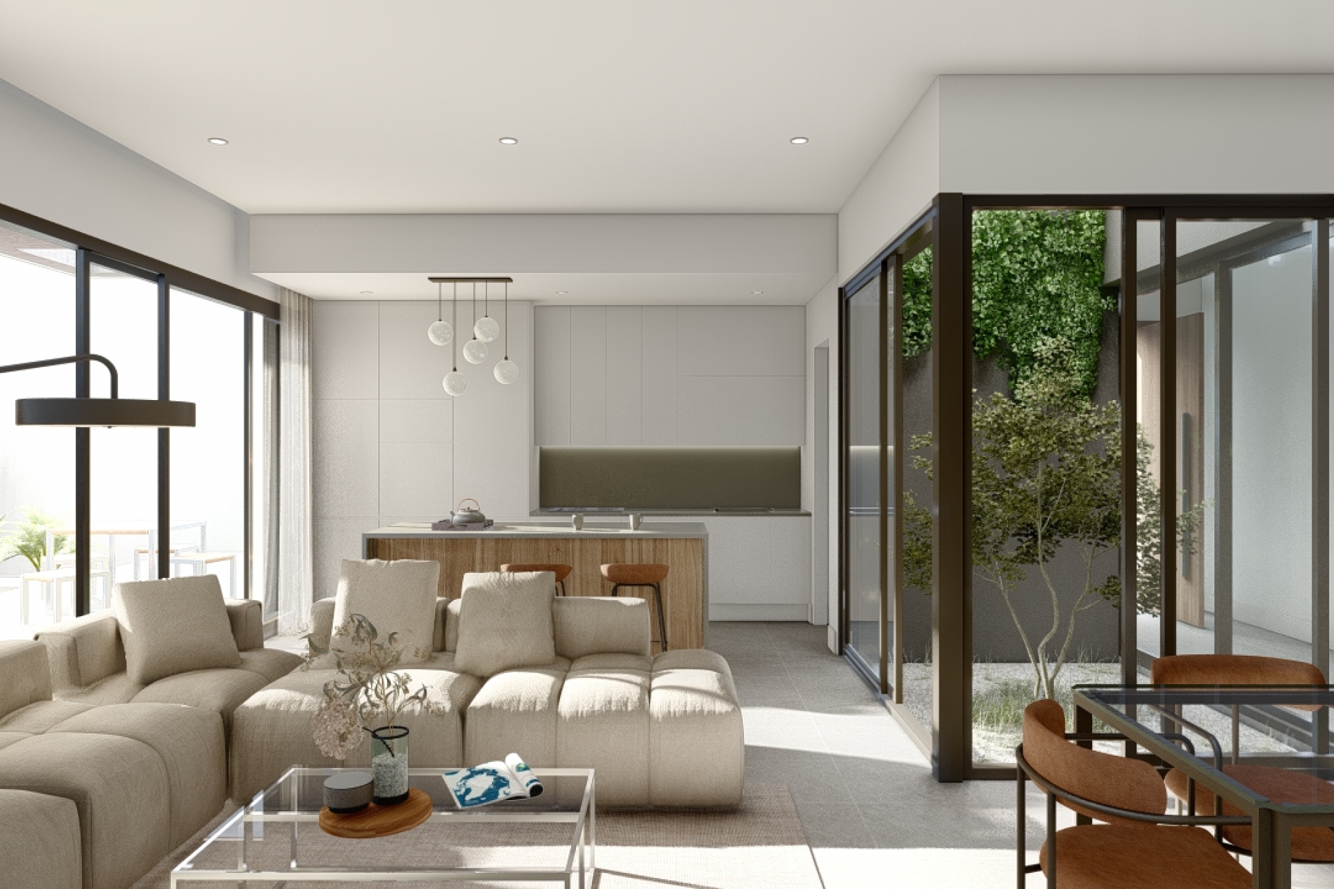 El interior de estas viviendas ha sido diseñado pensando en el confort y la funcionalidad. Con una distribución que incluye tres dormitorios y dos baños, cada espacio ha sido optimizado para ofrecer comodidad y estilo. Los suelos de gres porcelánico aportan un toque moderno y elegante, mientras que las persianas eléctricas y el videoportero añaden un nivel adicional de comodidad y seguridad. Los armarios empotrados proporcionan un amplio espacio de almacenamiento, y la preinstalación de aire acondicionado asegura que las viviendas estén preparadas para mantener una temperatura agradable durante todo el año.