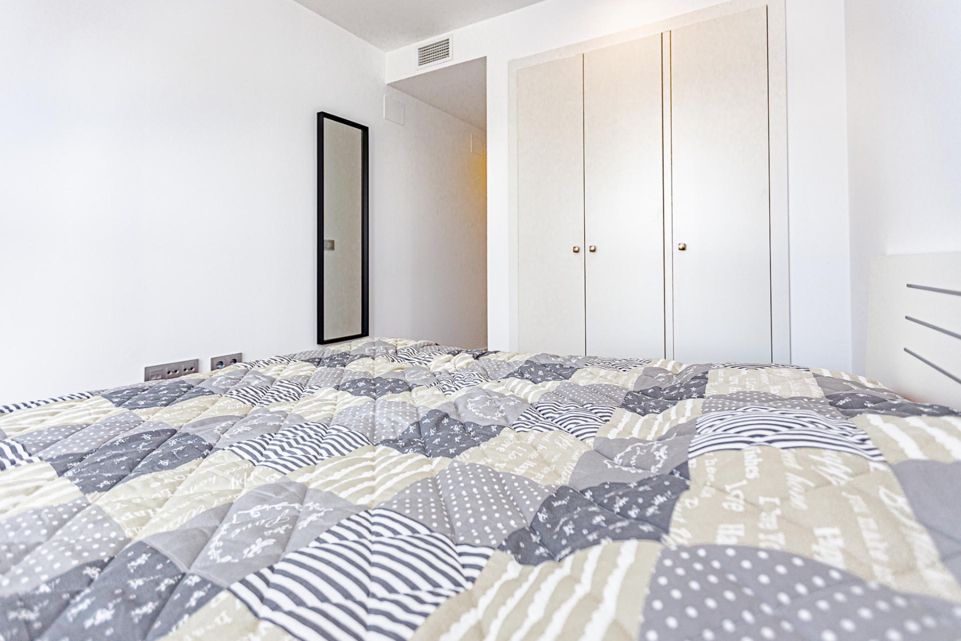 Bungalow en planta alta ubicado en el Campo de Golf Lo Romeo. Situada dentro del recinto del campo de golf en una urbanización cerrada, esta vivienda en planta alta cuenta con un solárium con vistas espectaculares. La vivienda consta de dos habitaciones y dos baños con ducha (uno de ellos en suite). Orientada al sureste, la propiedad se vende amueblada, con electrodomésticos y aire acondicionado centralizado. El bungalow tiene una terraza de más de 60 m2 donde se puede disfrutar del sol durante todo el año. El complejo residencial cerrado cuenta con estacionamiento y una piscina comunitaria para todos los residentes. La comunidad está decorada con plantas y árboles y presenta césped artificial. No dude en contactarnos para programar una visita.