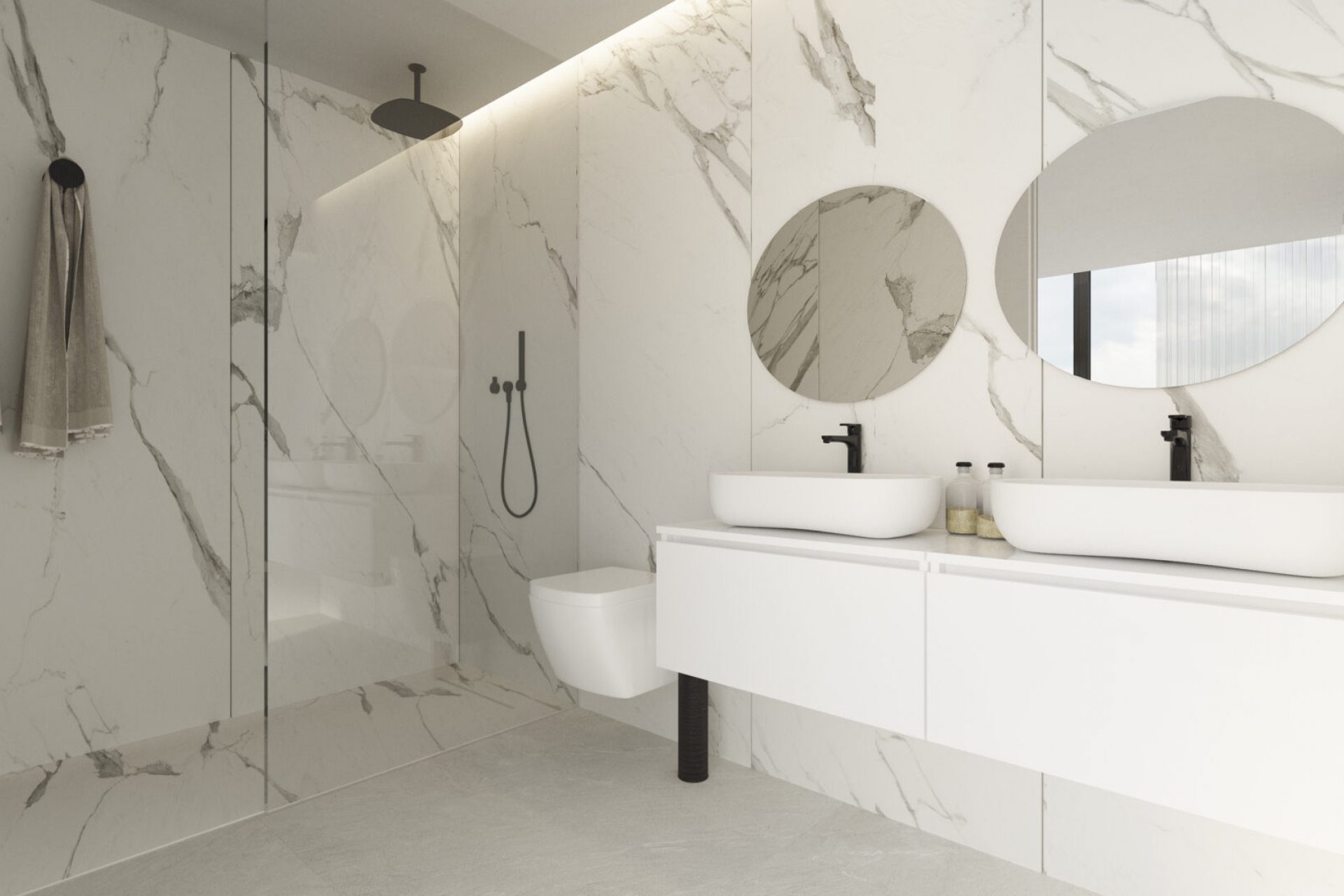 En el interior, la villa epitomiza el confort y la sofisticación. Cuenta con cuatro dormitorios, cada uno equipado con armarios empotrados que ofrecen soluciones de almacenamiento generosas. Los cuatro baños cuentan con un diseño moderno combinado con elegancia funcional. La calefacción por suelo radiante asegura calidez durante los meses más fríos, creando una atmósfera acogedora en toda la casa. La cocina está completamente equipada con electrodomésticos de primera calidad, lo que hace que la preparación de comidas sea sencilla mientras ofrece una experiencia culinaria excepcional. Cada espacio interior está cuidadosamente diseñado para mejorar el estilo de vida de los residentes.