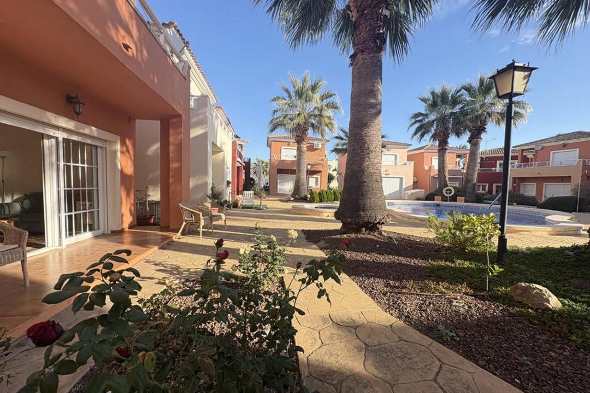 Vida independiente en Altaona Golf Esta encantadora villa independiente de dos plantas ofrece un estilo de vida tranquilo y privado en el corazón de Altaona Golf. La propiedad cuenta con dos dormitorios, un baño completo y un aseo de cortesía, distribuidos en dos plantas. En la planta baja encontramos una luminosa cocina americana abierta, totalmente integrada con el salón-comedor, creando un espacio cómodo y social. Este nivel también incluye un aseo de invitados y un pequeño trastero. En la planta superior, la vivienda dispone de dos dormitorios bien proporcionados y un baño completo. Desde el dormitorio principal se accede directamente a una terraza privada con vistas abiertas a las zonas comunes. En el exterior, los residentes pueden disfrutar de una magnífica zona comunitaria con piscina y jardines. La vivienda necesita algunas mejoras estéticas, ofreciendo una excelente oportunidad para personalizarla a tu gusto. Sobre Altaona Golf Altaona Golf es un resort seguro y consolidado, rodeado de naturaleza y montañas, que ofrece tranquilidad y calidad de vida. Situado a pocos minutos de Murcia, combina calma con excelentes conexiones y servicios. Muchas gracias por ver el vídeo.