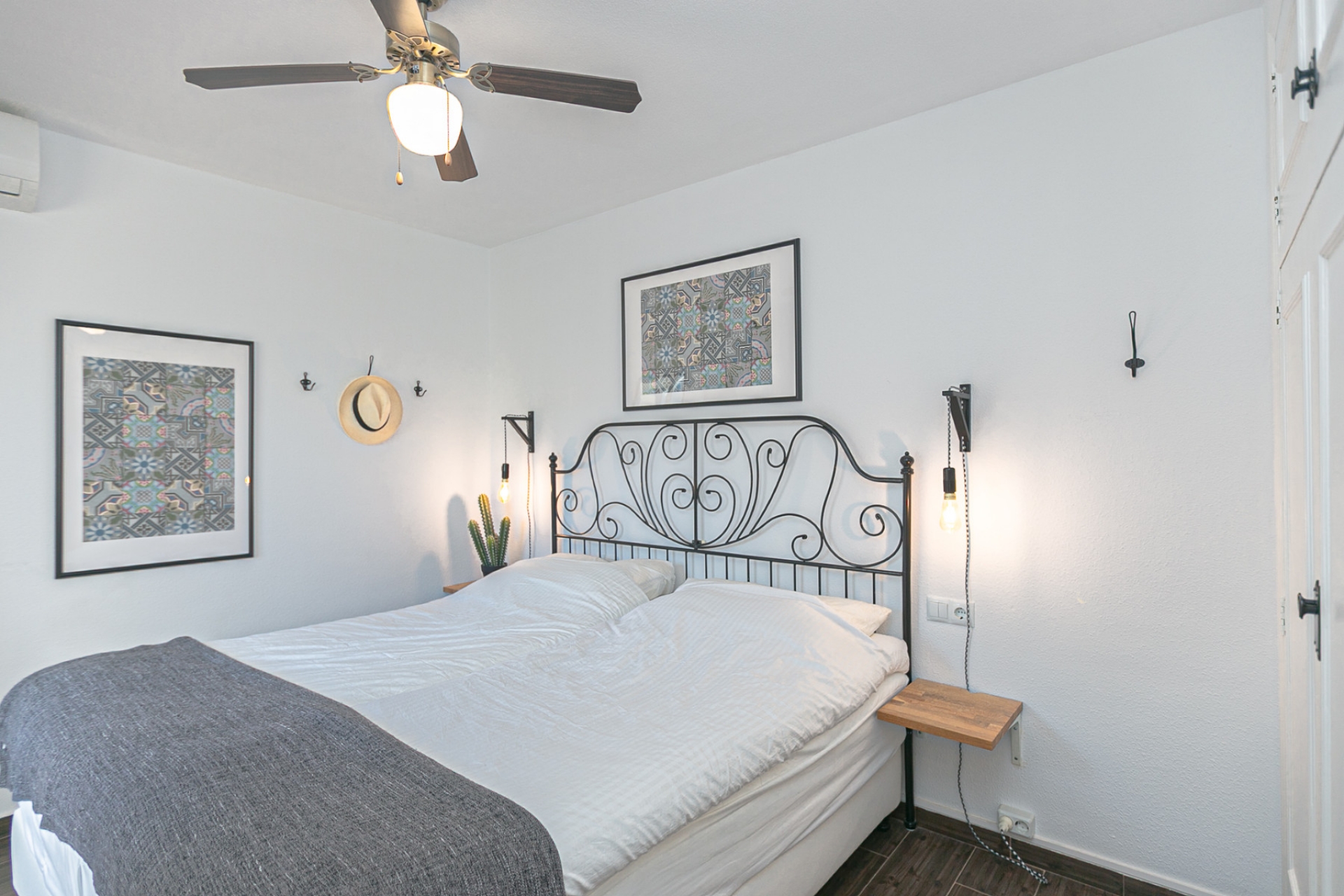 Cette charmante maison type quad se situe dans une résidence fermée avec piscine communautaire, offrant un cadre paisible idéal pour y vivre toute l’année ou pour les vacances. Elle dispose d’une entrée indépendante avec possibilité de stationner sur la parcelle, d’un local de rangement extérieur, parfait pour les vélos, ainsi que d’un barbecue en dur à l’entrée. À l’intérieur, vous trouverez un salon chaleureux, une chambre au rez-de-chaussée, une salle de bain complète avec douche, une buanderie et une cuisine semi-ouverte moderne. À l’étage se trouvent la chambre principale, une salle de bain rénovée avec douche, et une terrasse privée donnant accès au solarium, équipé d’une douche extérieure et d’un second espace de rangement. La maison est vendue meublée, avec électroménagers et climatisation, prête à être habitée. Située à Torreta III, proche de San Luis et à quelques minutes du centre de Torrevieja, une ville côtière dynamique avec tous les services, marina, promenade et les magnifiques plages de la Costa Blanca.