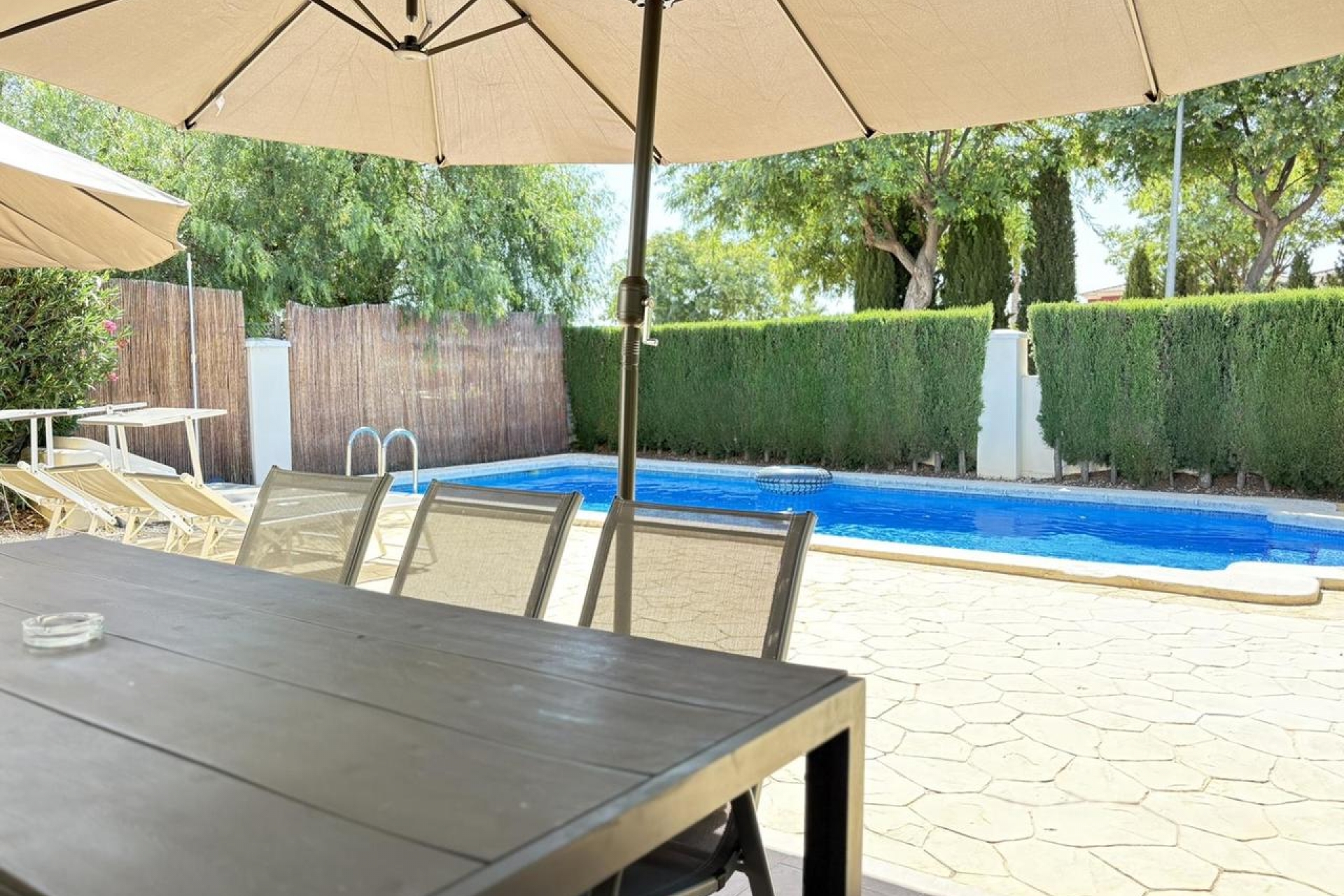 Charmante villa individuelle à vendre avec grand terrain et grande piscine – Altaona Golf Découvrez cette magnifique villa individuelle parfaitement entretenue, située dans le paisible et sécurisé complexe Altaona Golf, à quelques minutes de Murcia et de la côte. Implantée sur un terrain exceptionnel, la propriété offre intimité, espace et un excellent cadre de vie extérieur. Son atout principal est une grande piscine privée, idéale pour se détendre et recevoir toute l’année. La villa est en excellent état, avec une cuisine récemment rénovée apportant une touche moderne. Elle comprend trois chambres : une au rez-de-chaussée avec toilettes, et deux à l’étage avec une salle de bain complète. La chambre principale donne accès à une terrasse à l’étage. Le jardin est facile d’entretien tout en offrant de l’espace pour les repas en extérieur et la détente. Pourquoi Altaona Golf ? Altaona Golf est l’une des résidences sécurisées les plus recherchées de la région, avec sécurité 24h/24, environnement paisible et jardins paysagers. Les résidents profitent du golf, de sentiers de promenade et vélo, ainsi que d’un clubhouse avec restaurant et bar. Proche de Murcia, de l’aéroport et des plages.