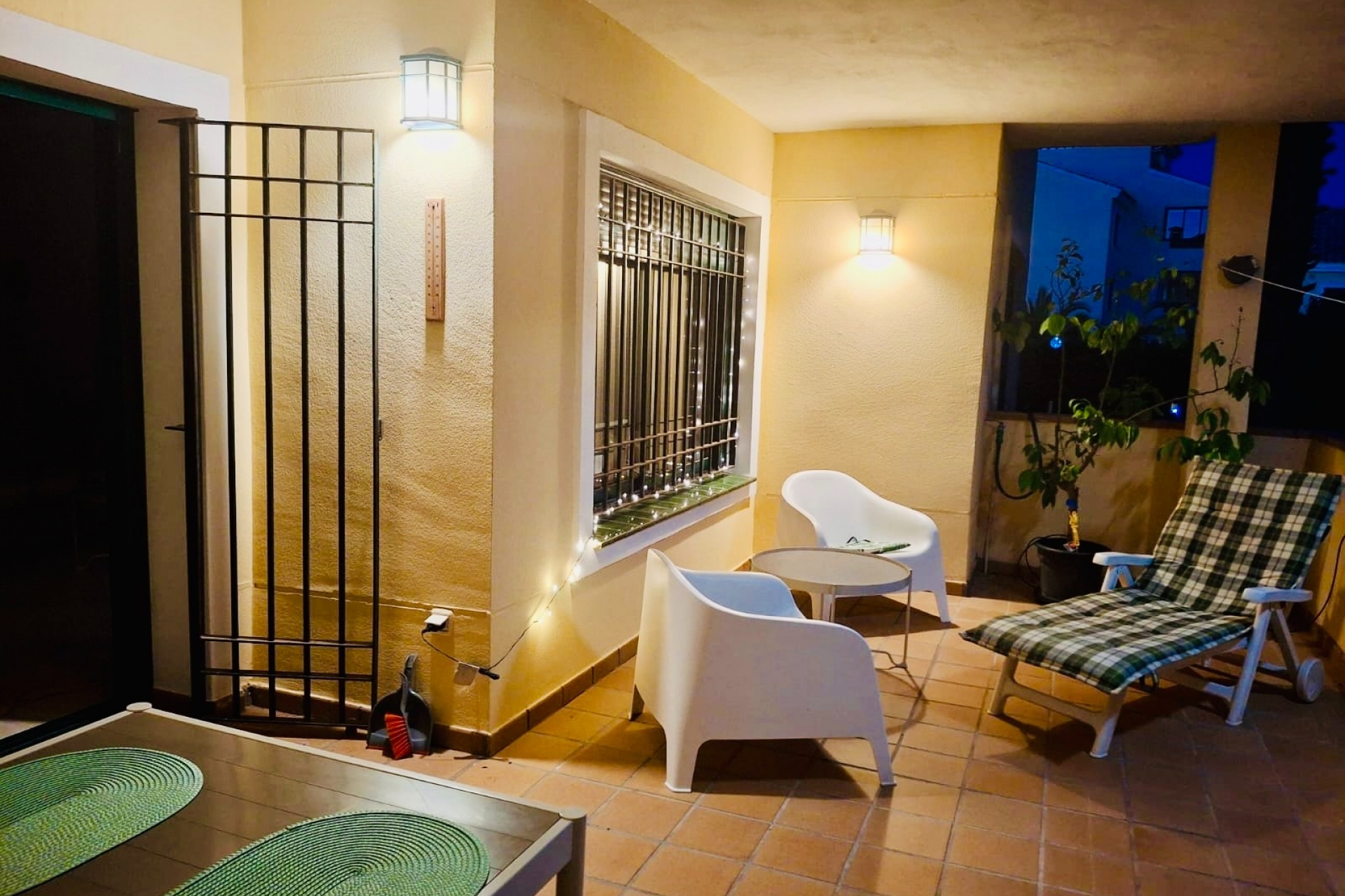 This stunning 2-bedroom, 2-bathroom apartment, located on the ground floor of a prestigious urbanization, offers the perfect blend of luxury and comfort. With its south-facing orientation, you will enjoy abundant natural light and a warm, inviting atmosphere all year round. Step into the spacious 45 m² living room, ideal for relaxing or entertaining guests. The separate, fully equipped kitchen comes with a convenient utility room, keeping everything within easy reach. Both bedrooms are equipped with air conditioning and feature en-suite bathrooms, ensuring maximum privacy and comfort. The built-in wardrobes offer plenty of storage space, and the large sunny terrace of 21 m² boasts breathtaking views of nature—perfect for outdoor dining or simply enjoying the tranquility. This apartment can be sold fully furnished and is part of a well-maintained community with beautiful gardens and a fantastic communal pool. Just minutes away, you will find top golf courses such as Campoamor, Villamartin, Las Ramblas, and Las Colinas. Also, enjoy the proximity to La Fuente shopping center with various restaurants, stunning beaches just 4 km away, and the vibrant Zenia Boulevard. - Bedrooms:2 - Bathrooms:2 - Built Area:103 m² - Built-in Wardrobes:3 - Year of Construction:2003 - Orientation:South Amenities: - Air Conditioning - Communal Pool - Playground - Fully furnished, including 2 comfortable sofa beds (never used as beds) - New furniture (indoors and outdoors) purchased 3 years ago and a brand-new mattress in the master bedroom - Fully equipped kitchen with modern appliances - Intercom - Utility Room - Reinforced Door - Alarm and Camera System - 24/7 Security Located just 600 m from Mercadona, 800 m from Aldi, and 740 m from the bustling La Fuente shopping center filled with bars and restaurants. Don’t miss the chance to own your ideal home in sunny Campoamor!