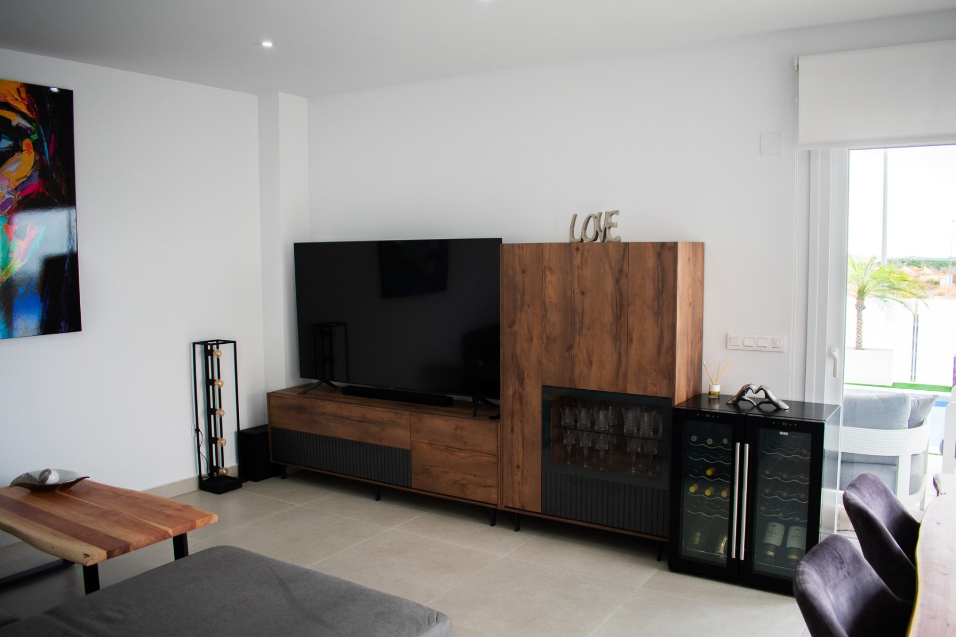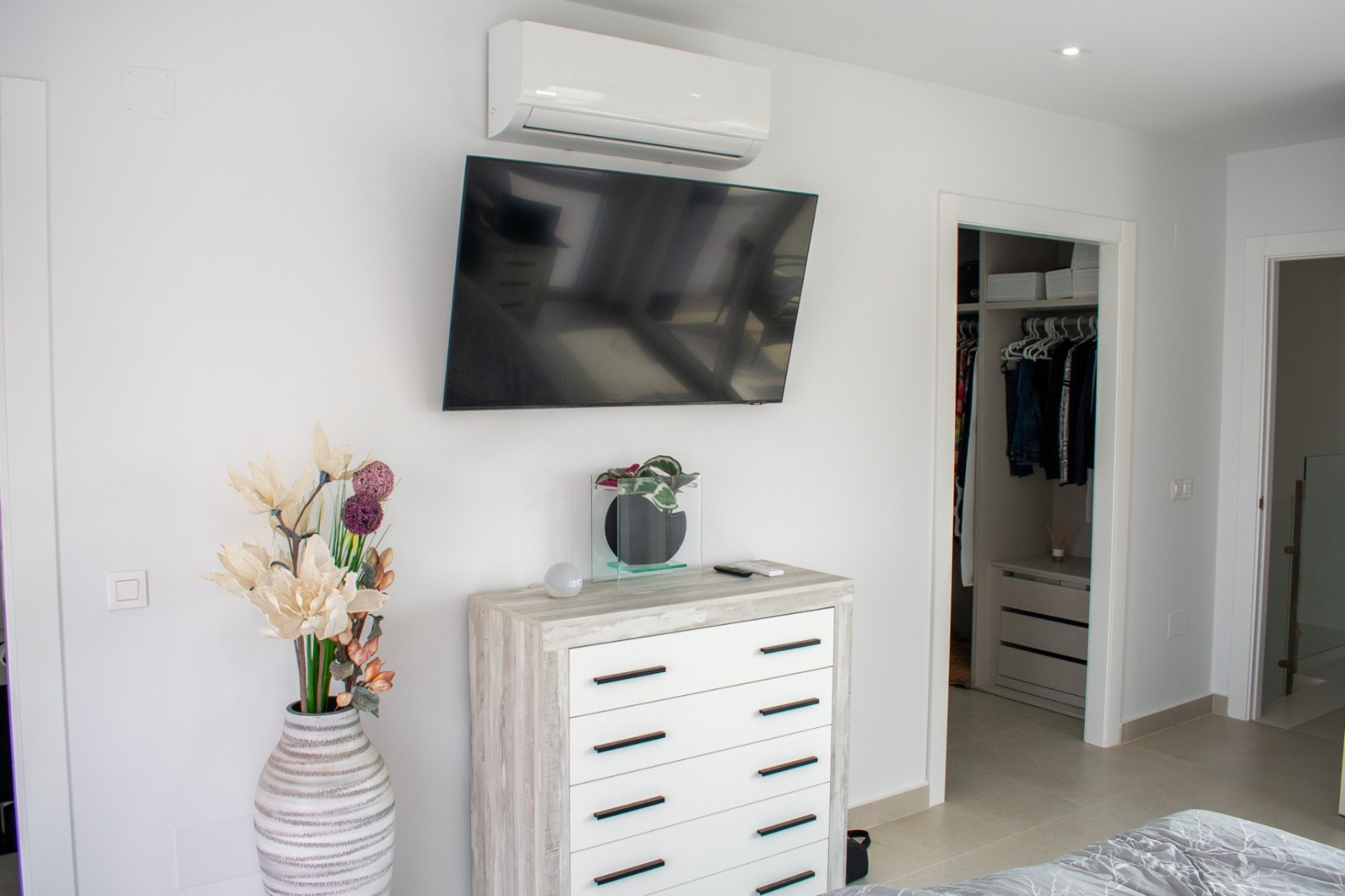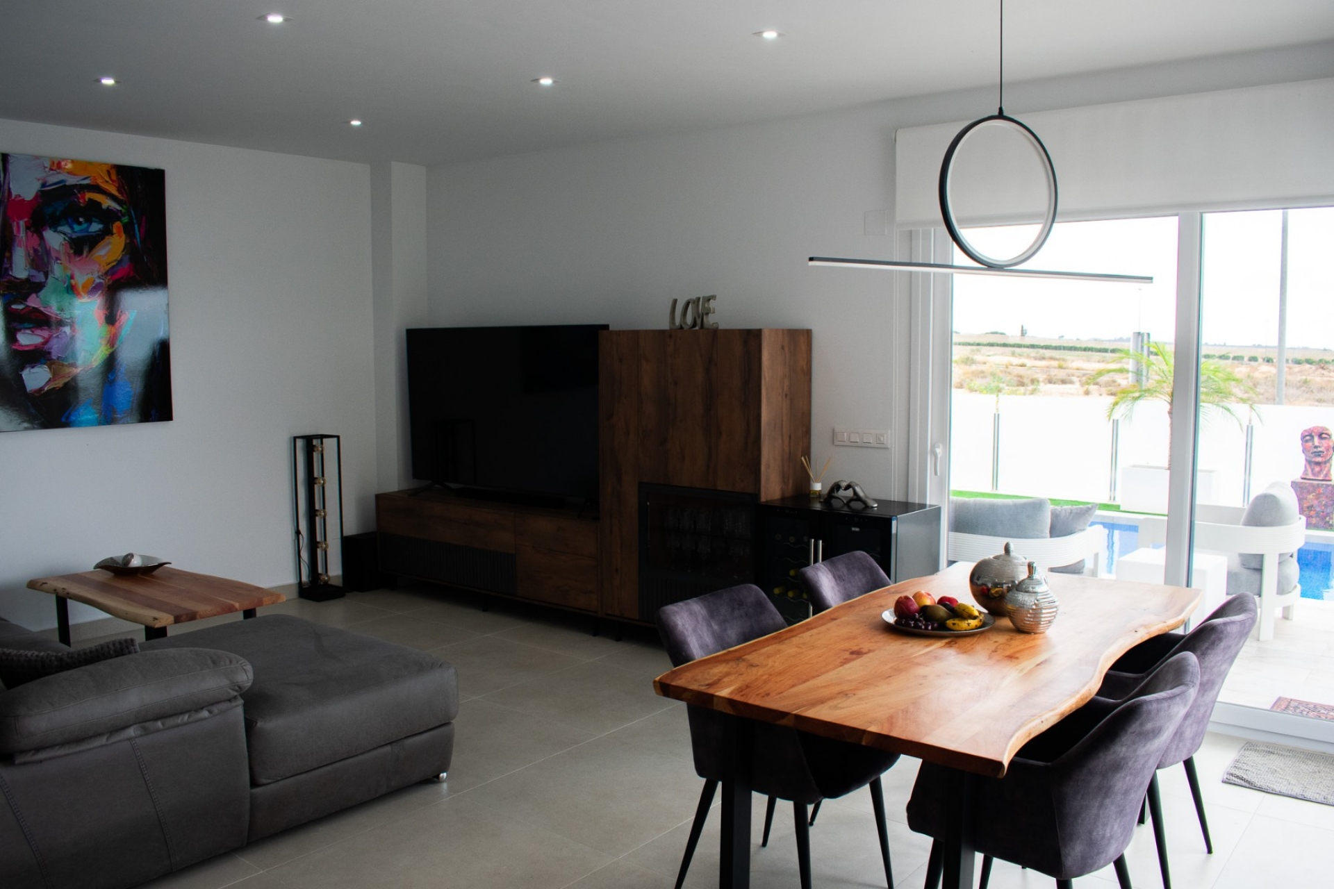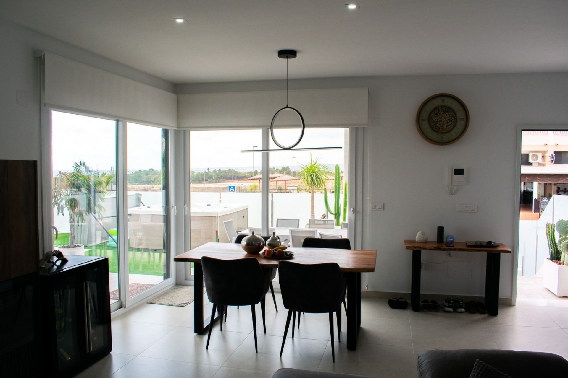 We present this detached villa located in the prestigious Vistabella Golf area, within the Los Naranjos urbanization in Orihuela. This unique property has been completely renovated from a 2023 construction, incorporating high-end finishes, a contemporary facade, and an elegant, updated exterior that enhances its modern and sophisticated style. With a private plot offering parking for up to three cars , this house is distributed over two floors . On the ground floor, there is a modern open-plan kitchen , a spacious living room , a separate laundry room , and two double bedrooms , one with an en-suite bathroom directly opposite and the other with an en-suite bathroom and dressing room . On the first floor , the master bedroom stands out for its spaciousness, its en-suite bathroom with dressing room , and a private terrace ideal for relaxing with unobstructed views. Outside, the villa offers a private saltwater pool , artificial grass , and a large upstairs terrace equipped with a dining table and outdoor kitchen , perfect for al fresco gatherings. It also features solar panels for optimal energy efficiency and a storage room for additional storage. A home located in a quiet, safe area, very close to golf courses, nature, and all necessary amenities. A high-end property on the Costa Blanca that combines design, technology, and comfort. Note : The furniture, washing machine and plants are not included in the price, but can be kept by agreement and negotiable price with the property owner . Climate: The climate on the Costa Blanca , often considered the best in Europe , fosters a very sociable and healthy lifestyle , characterized by outdoor activities, sports and leisure facilities , and exciting, cosmopolitan tourist cities that stand out for their top-tier services , some of them exclusive and considered truly luxurious. All of these cater to a discerning clientele seeking quality and personalized service. The Costa Blanca boasts over 300 days of sunshine a year . A paradise with excellent connections to all of Europe. Alicante-Elche Airport offers modern and spacious facilities and easy, convenient access from anywhere in the province. Around: The Costa Blanca continues to attract people from all over Europe, and other parts of the world, because it offers a unique quality of life in a beautiful setting on the shores of the Mediterranean Sea, surrounded by mountains and lush vegetation. In addition to the golf courses and marinas that you can enjoy all along the coast, the area also offers the opportunity to ski in the nearby Sierra Nevada, Javalambre, or Valdelinares , paradises for winter sports enthusiasts with stunning natural landscapes. The Costa Blanca offers a uniquely rich lifestyle , where the best beaches and coves in the Mediterranean combine with an interior full of mountains and villages that hold culture and historical monuments unlike any other in the world. We have a gift for you: We believe your trust deserves exceptional treatment. We'll be there for you whenever you need us. Our agency helps you transform your new property into your dream home by offering a free technical visit , where our team will advise you on potential improvements. Completely free! IMPORTANT!! Remember that our services NEVER increase the final price of the property for our clients. Our experience in the sector will make us your ally, a trusted advisor who will help you choose your dream home in the best area, inform you about the market price of the properties you are interested in, the quality of materials used... all the essential and objective information to ensure your experience is completely satisfactory. Our agency belongs to a group of established and specialized companies, all focused on the home sector: architecture, interior design, furniture, real estate sales and purchase advice, etc. These resources allow us to offer unique and exclusive services to our clients.