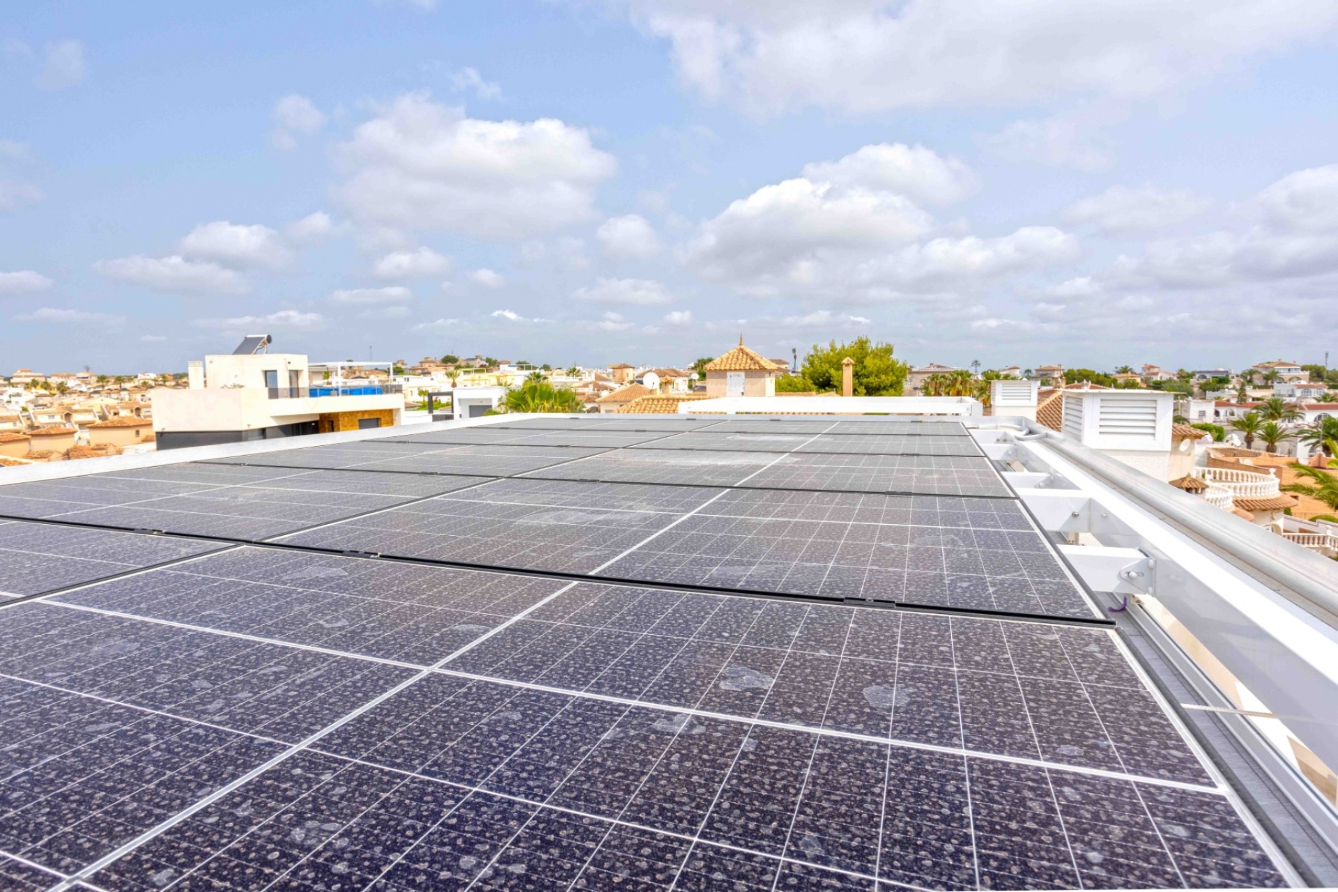 Discover Elevated Living in the Blue Lagoon Area Welcome to this exclusive residential oasis of just two sleek buildings, each offering six boutique units. Nestled in a tranquil setting, this stunning 2-bedroom, 2-bathroom penthouse combines modern luxury, breathtaking views, and outstanding efficiency. Modern Design and Unparalleled Views Step into a space where well-being, efficiency, and luminosity define your lifestyle. This 79 m² penthouse features an open-concept layout with large double-glazed windows that flood every corner with natural light. The highlight is the expansive 87 m² private rooftop terrace, offering panoramic views of the sea, salt lakes, and mountains. Enjoy more than 3,000 hours of sunshine a year, with majestic sunrises and stunning sunsets to frame your days. Designed for Comfort and Sustainability Luxury meets sustainability on the rooftop terrace, equipped with an outdoor kitchen, a spacious pergola with horizontal and vertical parasols, and 4100-watt solar panels to meet your energy needs. Additional features like a washing machine and fridge-freezer are discreetly housed on the terrace for ultimate convenience. Resort-Style Living Relax by the elegant communal pool, designed with your well-being and that of your family in mind. The complex also includes a private garage space and a storage room for added comfort and functionality. Fully Furnished and Move-In Ready This penthouse is offered fully furnished and in impeccable condition, ready for you to begin your new dream life. Key Features: 165 m² total build 79 m² usable)2 spacious bedrooms and 2 bathroomsPrivate garage space includedPrivate storage roomBuilt-in wardrobesAir conditioningCommunity pool and green areas A Perfect Retreat Escape the hustle and bustle and reconnect with your essence in this serene paradise. This is more than a home – it’s a lifestyle for those who value comfort, efficiency, and the beauty of nature. Blue Lagoon is calling – are you ready to answer? Book your viewing now!