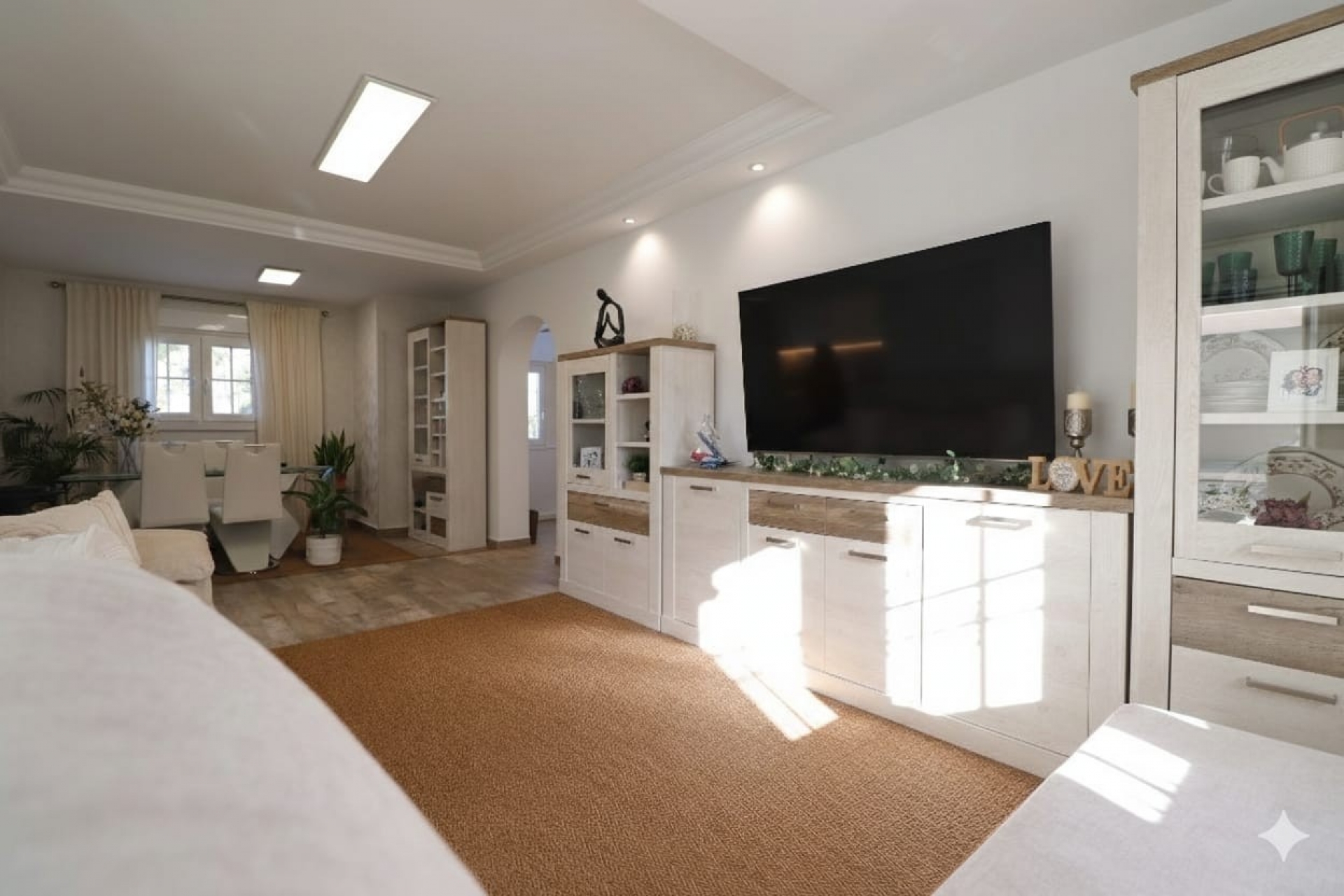 This South East Facing, Four Bedroom, Detached Villa in Las Filipinas, is located overlooking a green area of trees and bushes, in a highly desirable residential setting. A variety of bars and eating places can be reached within a 10–15 minute walk, while a main chain supermarket and La Fuente commercial centre are just a short drive away. Golf lovers are perfectly placed with Campoamor, Las Ramblas, and Villamartin golf courses all within 5 minutes by car. La Zenia Boulevard shopping centre is only 10 minutes away, and the beautiful Orihuela Costa beaches can be reached in 10–15 minutes, making this an ideal Costa Blanca South location. The villa is entered via a welcoming entrance hall with stairs leading up to the first floor. The lounge/dining room is bright and spacious, with double opening glazed doors leading into a charming curved glazed-in area currently used as an additional dining space. Wide modern sliding glazed doors separate this living area from the beautifully fitted modern kitchen. Also on this level is a double bedroom and a stylish modern shower room with a walk-in shower. Upstairs, the master double bedroom enjoys direct access to a private terrace, which can also be accessed from the landing. Another double bedroom has been fitted with a walk-in wardrobe/dressing area in addition to built-in wardrobes, while the remaining two bedrooms also feature built-in wardrobes. A further modern shower room with a walk-in shower serves this floor. The underbuild is accessed externally and is currently laid out to include extensive office area, sitting room, double bedroom, dressing area, shower room, and utility room — offering excellent flexibility for guests, working from home, or extended family accommodation. Outside, the tiled garden is designed for easy maintenance and includes off-road parking, a private saltwater swimming pool, a BBQ area, and a covered space ideal for shaded dining and entertaining. This impressive villa offers space, versatility, and a prime location close to golf, shopping, and the coast — a fantastic opportunity on the Costa Blanca South.