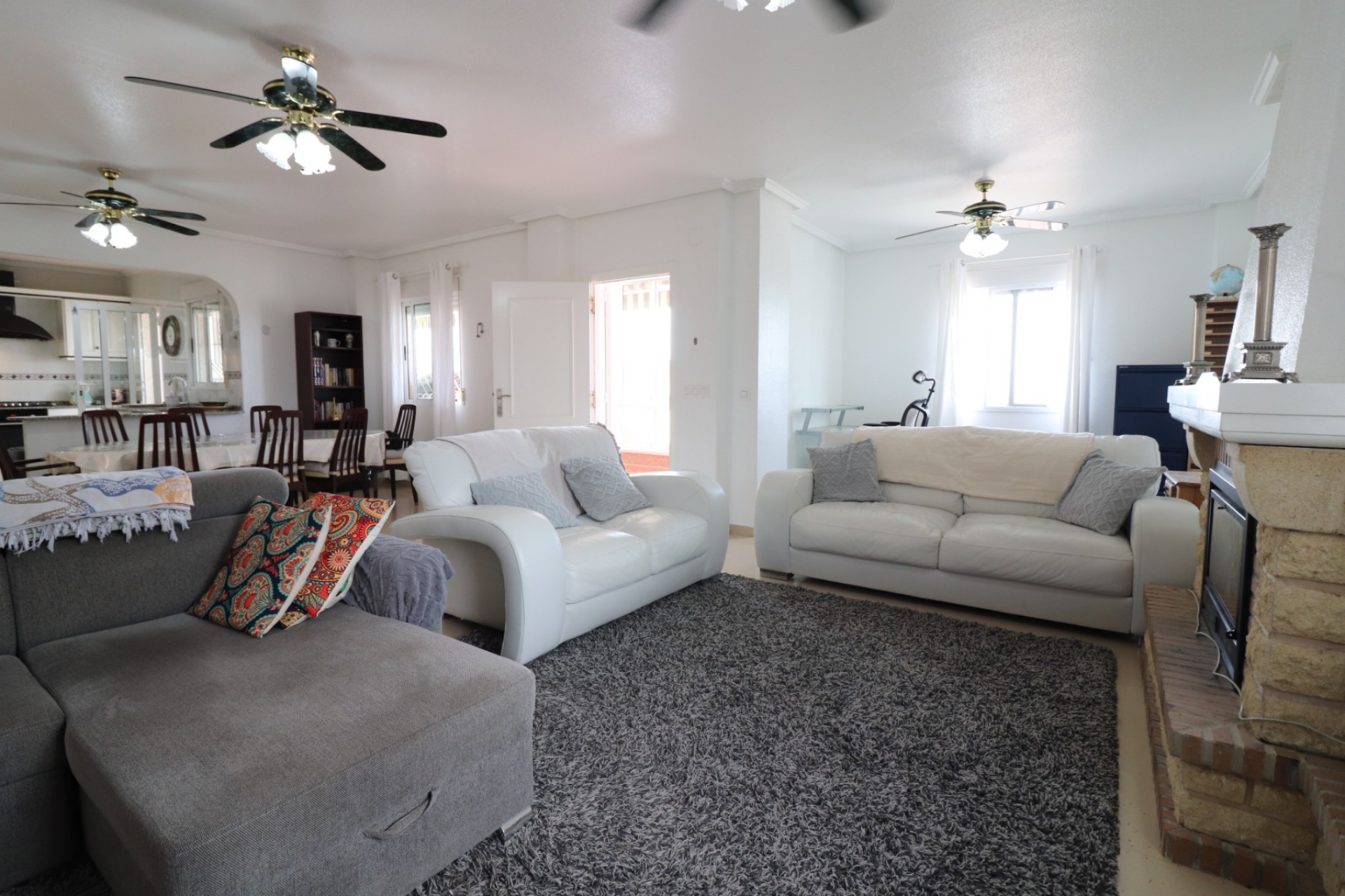 FANTASTIC OPPORTUNITY!!! - This Extremely Spacious, West Facing, Four Bedroom Detached Villa in Lomas de La Juliana is located on a prestigious Urbanization between Algorfa Village & La Finca Golf Resort, situated on a generous 1251m2 plot. This stunning property features four bedrooms and three bathrooms, including a luxurious master bedroom with an en suite bathroom that boasts a feature corner bath and shower. Both the master and the fourth bedroom have direct access to the first-floor terrace. Additionally, there is one toilet, off-road parking, a car port, and a garage. The villa offers a front glazed terrace where you can enjoy amazing panoramic country, mountain, and sunset views. The rear conservatory provides additional living space, while the open plan fully fitted kitchen comes with an adjoining utility room for added convenience. The spacious living area is equipped with air conditioning throughout, grills, a fireplace, and fitted wardrobes for ample storage. The exterior of the property is just as impressive, featuring a private heated swimming pool and a permanent gazebo for outdoor shaded dining, perfect for entertaining guests. There is also a BBQ area and a beautifully landscaped rear garden with terraces, trees, shrubs, and plants. The property includes 8 solar panels and 1 solar water panel, contributing to its energy efficiency. Security is a priority with CCTV and an alarm system installed. This villa's location offers the best of both worlds – a tranquil setting with a tennis club at the start of the urbanization, yet only a 5-minute drive to the nearest shops and amenities, and a 15-minute drive to the nearest beaches. This property truly represents a luxurious lifestyle in the heart of Costa Blanca South. 412m2 Build Size, Simply Wow!!! This property has a TOURIST LICENSE for short term holiday rentals. With a great track record of packed out summers by the current owner...