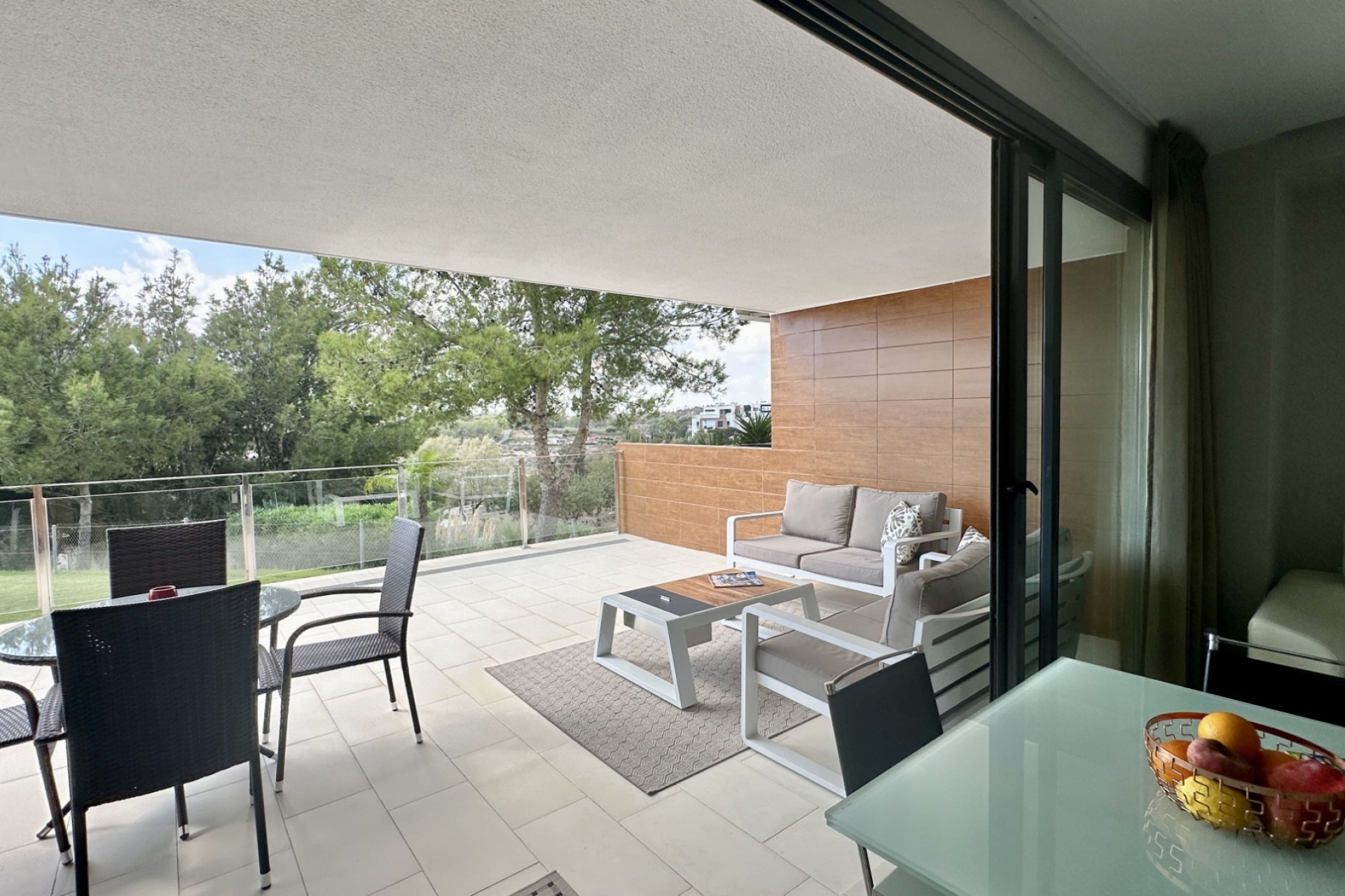 We are delighted to present this beautifully maintained ground-floor apartment in the heart of Villamartín — one of the most popular areas of Orihuela Costa. This stylish 2-bedroom, 2-bathroom home is move-in ready and offers the perfect combination of comfort, design, and outdoor living. Step inside and you’re greeted by a bright, modern interior with an open-plan kitchen, spacious living room, and a separate laundry room. The home features two generously sized terraces — a 36 m² rear terrace overlooking the communal pool and gardens, and a 29 m² front terrace large enough to park your car within the private plot. This gives you the option to enjoy sun or shade throughout the day. Built in 2013, the property boasts a clean and contemporary design with built-in wardrobes, air conditioning, and high-quality finishes throughout. Located in a quiet yet central area, it’s ideal whether you’re looking for a full-time residence, holiday retreat, or a solid investment. Key Features: 2 spacious bedrooms and 2 bathrooms 79 m² built area with 60 m² usable living space Large private terraces: 36 m² rear + 29 m² front Fully equipped kitchen + laundry room Built-in wardrobes, air conditioning Beautiful communal pool and garden area Energy-efficient building (certified) Elevator access and gated community Private garage space included South-facing orientation – light all day Unbeatable Location Villamartín is a vibrant year-round destination known for its golf courses, international community, and excellent services. Enjoy 4 top-tier golf courses nearby (including Las Colinas, ranked among the best in Spain), plus a wide range of restaurants, bars, supermarkets, and entertainment. La Zenia Boulevard, the largest shopping centre on the Costa Blanca, is just minutes away. Beaches, cinemas, go-karts, and more — everything is at your fingertips. This property is ideal for anyone looking for a stylish, easy-care apartment in a prime Costa Blanca location with strong rental potential. Don’t miss this opportunity — contact us today to schedule your private viewing. Welcome home.