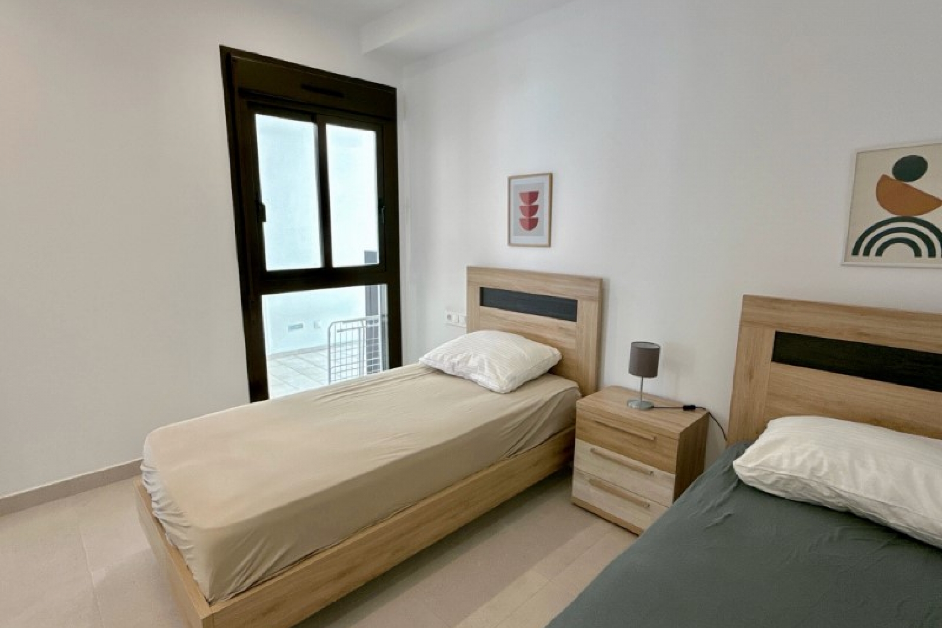 This spacious ground floor apartment with 2 bedrooms and 2 bathrooms is located in the charming and authentic Spanish village of Pilar de la Horadada, situated in the beloved Costa Blanca South. With a southwest-facing terrace of no less than 35 m², you can fully enjoy the sun and a beautiful view of the communal pool. The apartment is part of a small urbanization with only 18 apartments, featuring a communal garden, a secure bike storage, and a covered private parking space. The stylish decor and the use of high-quality materials give the apartment a luxurious appearance. Extra comfort is provided by underfloor heating in the bathrooms, an osmosis system for pure drinking water, and a large sun awning. Another great advantage: the apartment is sold fully furnished - you can move in immediately and enjoy. The location is ideal: all amenities are within walking distance (shops, restaurants, pharmacy, etc.), and just 3 km away, you will find several beautiful sandy beaches along the Mediterranean Sea. Viewings are available 7 days a week, by appointment. Don't miss this unique opportunity - an ideal apartment for personal use or as an investment with rental potential in one of the most popular regions of Spain! Contact us today for more information or to schedule a viewing. Year of construction: 2022 Built: 77 m² apartment + 23 m² covered/secure parking space and 35 m² terrace Pool: communal IBI/Suma: 243 € per year Community fee: 67 € per month EPC: B #ref:R2183
