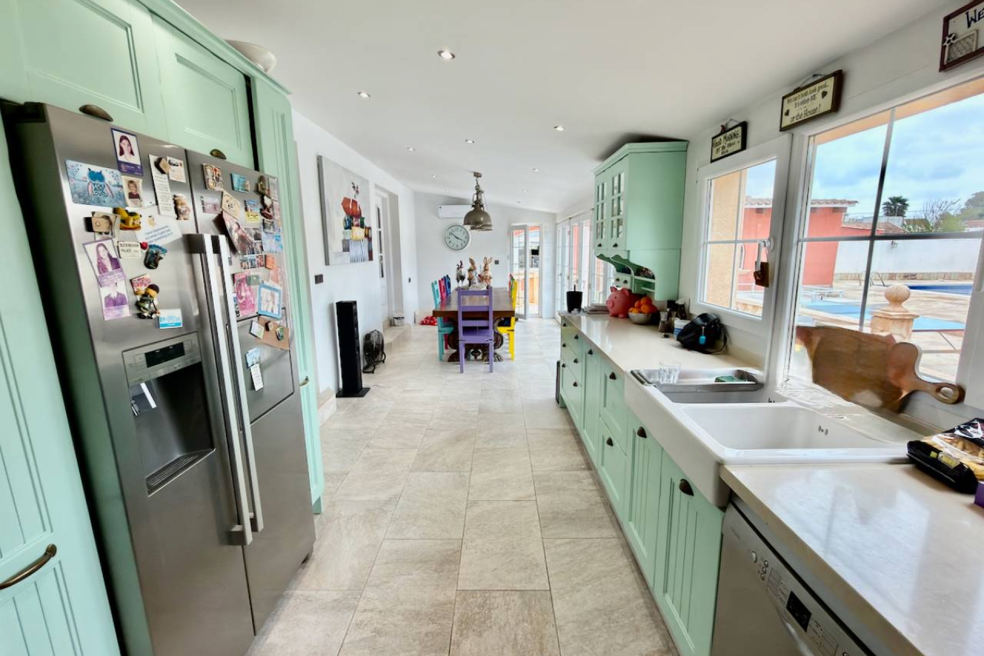 Spacious 6-Bedroom Country Villa with Separate Apartment, Private Pool & Equestrian Facilities Set on a generous 2,286 m² plot, this impressive six-bedroom villa offers privacy, space, and versatile living just five minutes from local amenities. With a built area of 299 m², the property is presented in excellent condition and enjoys a south-east facing orientation, providing plenty of natural light and beautiful views over the garden and pool. The main house features bright and spacious living areas, a fully fitted separate kitchen, a utility room, and multiple terraces including a glazed terrace ideal for year-round enjoyment. The property offers six bedrooms, three bathrooms, and an additional guest toilet, with fitted wardrobes and a luxurious walk-in wardrobe in the main suite. Air conditioning, ceiling fans, double glazing, and fibre optic internet ensure comfort and convenience. A standout feature of this property is the self-contained separate apartment, perfect for guests, extended family, or potential rental income. The home also includes two kitchens, offering flexibility for multi-generational living or entertaining. Outside, the villa sits within beautifully landscaped private gardens with a large private swimming pool, sunbathing areas, and an outdoor kitchen with BBQ area, ideal for entertaining. The plot also includes stables and a paddock, making it an excellent option for horse lovers or those seeking a rural lifestyle with space to enjoy. Additional features include electric gates, alarm system, exterior lighting, large storage room, carport, and off-road parking for up to six vehicles. Property Details Bedrooms: 6Bathrooms: 3Guest Toilet: 1Built Area: 299 m²Plot Size: 2,286 m²Kitchens: 2Pool: PrivateParking: Private (6 spaces)Orientation: South-East Distances Beach: 20 minutesAirport: 30 minutesAmenities: 5 minutesGolf: 15 minutes