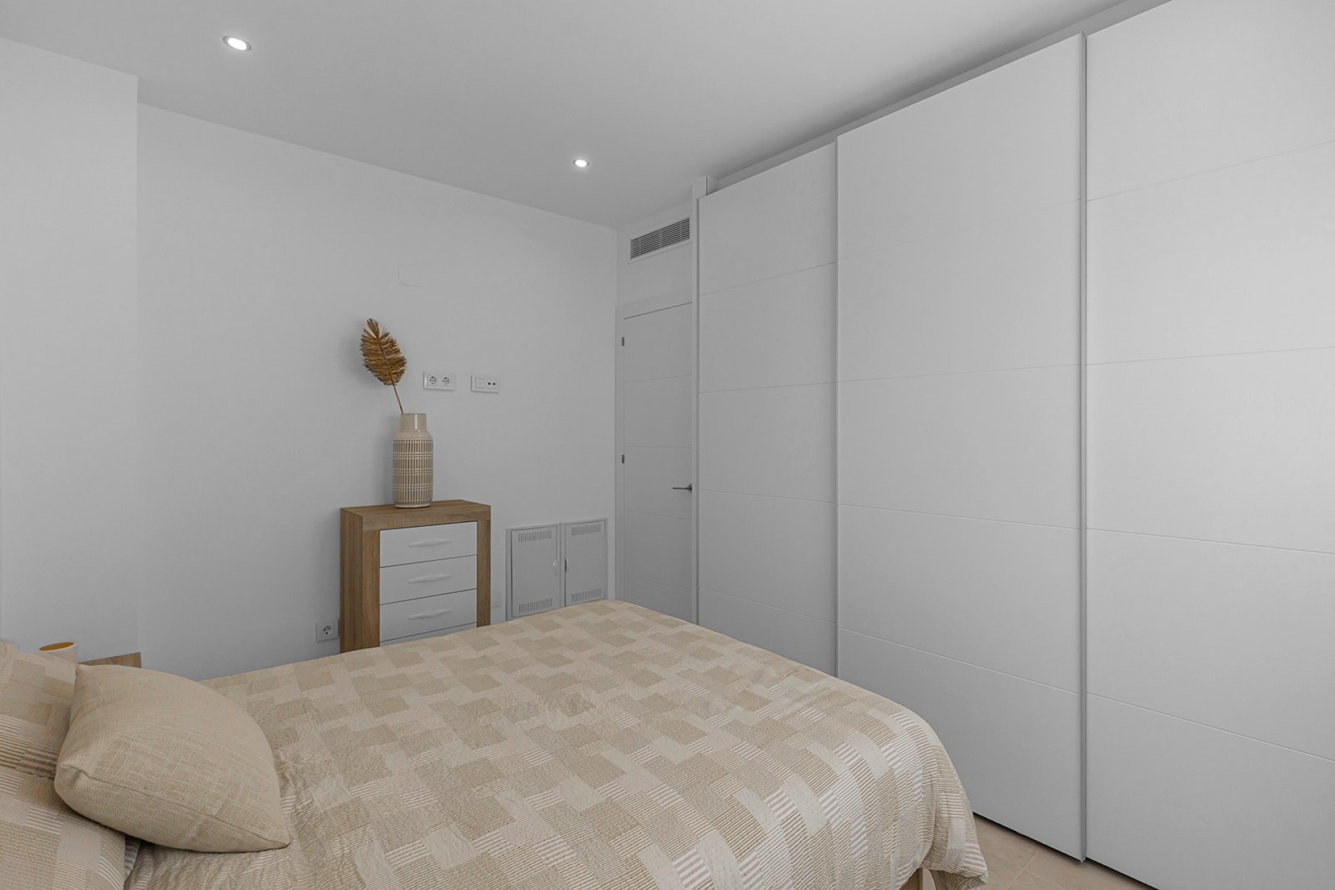 The property enjoys multiple outdoor areas, enhancing its year-round appeal. The west-facing terrace on the same level as the living area is ideal for relaxing in the afternoon sun while enjoying pleasant views over the communal swimming pool. A practical backside patio provides extra space for storage or utility needs. Above, the impressive 68m² private solarium offers complete privacy and sun throughout the day, perfect for sunbathing, outdoor dining, or creating a chill-out lounge to enjoy the Mediterranean climate.