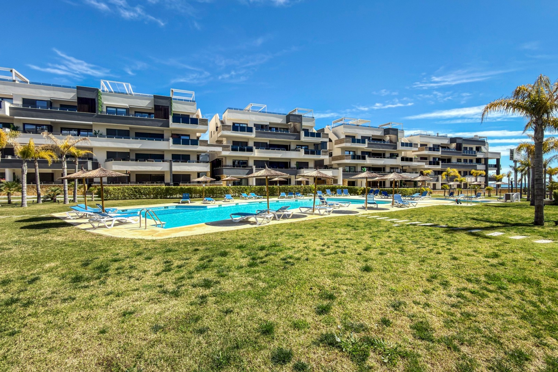 Step into refined coastal living with this exceptional 3-bedroom, 2-bathroom apartment, ideally located just moments from the sea and within walking distance of vibrant bars, restaurants, shops, and supermarkets. Whether you're searching for a stylish holiday escape, a premium rental investment, or a full-time residence by the Mediterranean, this property offers the perfect balance of lifestyle and location. Designed for seamless indoor-outdoor living, the apartment boasts a spacious wraparound terrace with direct access from all three bedrooms—offering breathtaking panoramic sea views. The master bedroom features a modern en-suite bathroom, while the two additional bedrooms provide generous space for family or guests, complemented by a second fully equipped bathroom. The property is beautifully presented and sold fully furnished with high-end designer furniture and elegant finishes throughout, making it completely move-in ready. Additional features include ducted air conditioning, electric shutters, underfloor heating in the bathrooms, and a private double parking space with a large storage room. Set within a secure gated community, residents enjoy access to a large swimming pool surrounded by landscaped gardens with ambient evening lighting, as well as premium wellness facilities including a fully equipped gym, sauna, Jacuzzi, and changing areas. This is a rare opportunity to own a turnkey luxury apartment in a prime coastal location—where comfort, style, and convenience come together effortlessly.